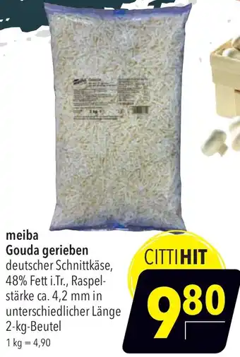 Jetzt im Angebot bei CITTI Markt: meiba Gouda gerieben ✅ Aktion gültig vom 29-01 bis 10-02.