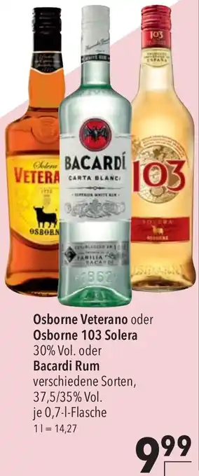 Osborne Veterano oder Osborne 103 Solera oder Bacardi Rum-Angebot bei CITTI Markt