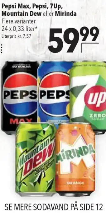 Pepsi Max, Pepsi, 7Up, Mountain Dew eller Mirinda