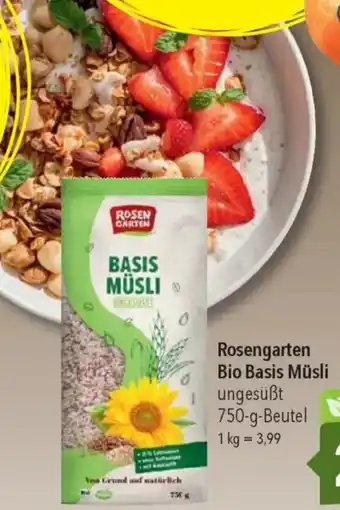 Jetzt im Angebot bei CITTI Markt: Rosengarten Bio Basis Müsli ✅ Aktion gültig vom 28-01 bis 10-02.