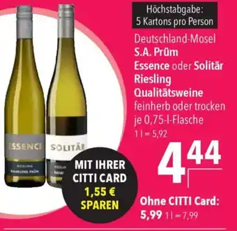 S.A. Prüm Essence oder Solitär Riesling Qualitätsweine Aktion bei CITTI Markt