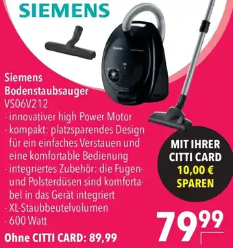 SIEMENS Bodenstaubsauger VS06V212-Rabatt bei CITTI Markt
