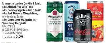 oder Bombay Sapphire Gin & Tonic oder Jack Daniel's Mixgetränke, verschiedene Sorten oder Sierra Lime Margarita oder Strawberry Margarita 0,0-10% Vol.