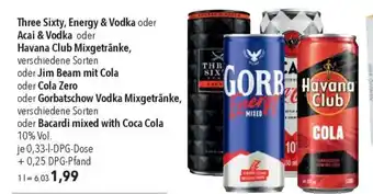 Three Sixty, Energy & Vodka oder Acai & Vodka oder Havana Club Mixgetränke 330 ml