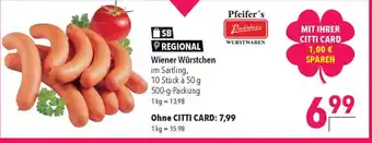 Den Preis von dem Wiener Würstchen finden Sie auch oben auf der Website, zusammen mit dem Datum, ab wann das Angebot erhältlich ist. Sie können die Preise auch im aktuellen CITTI Markt Prospekt nachhalten oder auf der CITTI Markt Website nachschauen. Durch die Angebote können Sie sicher sein, die CITTI Markt Produkte zum absoluten Bestpreis zu ergattern.