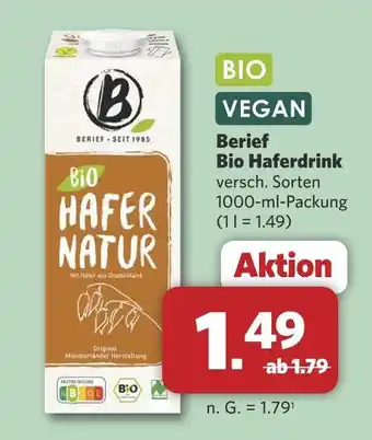 Jetzt im Angebot bei Combi: Berief bio haferdrink ✅ Aktion gültig vom 5-01 bis 10-01.