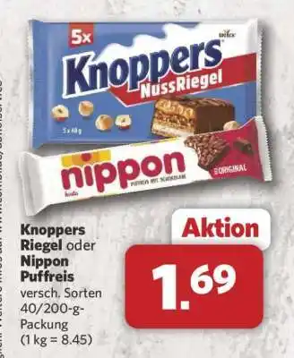 Knoppers Riegel oder Nippon Puffreis Angebote und Online Aktionen direkt aus dem aktuellen Combi Angebot