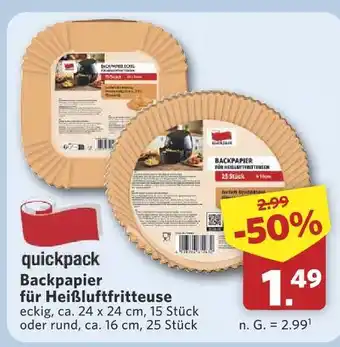 Quickpack backpapier für heißluftfritteuse eckig Angebote und Aktionen bei Combi
