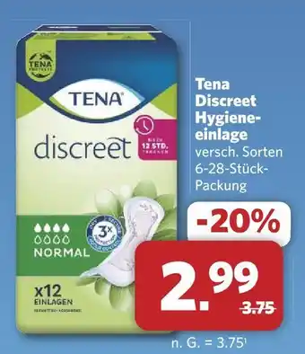 Jetzt im Angebot bei Combi: Tena discreet hygieneeinlage ✅ Aktion gültig vom 19-01 bis 24-01.