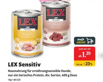 Jetzt im Angebot bei Das Futterhaus: Lex nassnahrung für ernährungssensible hunde ✅ Aktion gültig vom 31-01 bis 7-02.