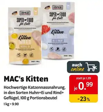 Jetzt im Angebot bei Das Futterhaus: Mac's kitten hochwertige katzennassnahrung ✅ Aktion gültig vom 3-01 bis 10-01.
