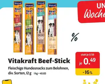 Jetzt im Angebot bei Das Futterhaus: Vitakraft beef-stick ✅ Aktion gültig vom 31-01 bis 7-02.