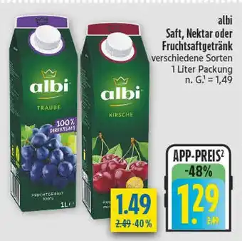 Das Angebot ist in verschiedenen Geschäften erhältlich. Schauen Sie sich alle Produkte an, um das günstigste Albi traube zu ergattern. Wenn Sie gerne nachschauen möchten, ob der Artikel woanders noch günstiger ist, werfen Sie einen Blick auf die Kategorie 'Supermärkte'. Möglicherweise sind diese Angebote auch interessant für Sie: Albi Fruchtsaft, Albi Saft & Albi Saft.