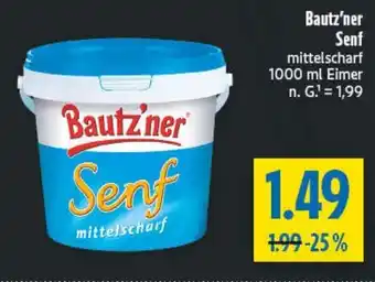 Das Angebot ist in verschiedenen Geschäften erhältlich. Schauen Sie sich alle Produkte an, um das günstigste Bautz'ner Senf zu ergattern. Wenn Sie gerne nachschauen möchten, ob der Artikel woanders noch günstiger ist, werfen Sie einen Blick auf die Kategorie 'Supermärkte'. Möglicherweise sind diese Angebote auch interessant für Sie: Thomy Senf, ZWERGENWIESE Senf & Bautzner Senf.