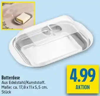 Den Preis von dem Butterdose finden Sie auch oben auf der Website, zusammen mit dem Datum, ab wann das Angebot erhältlich ist. Sie können die Preise auch im aktuellen Diska Prospekt nachhalten oder auf der diska Website nachschauen. Durch die Angebote können Sie sicher sein, die diska Produkte zum absoluten Bestpreis zu ergattern.