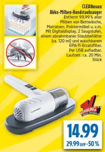 CLEANmaxx Akku-Milben-Handstaubsauger-Angebot bei diska