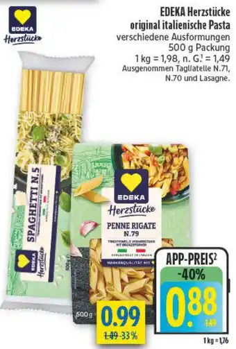 EDEKA Herzstücke original italienische Pasta Angebote und Aktionen bei diska