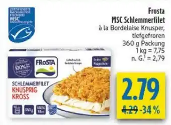 Den Preis von dem Frosta MSC Schlemmerfilet finden Sie auch oben auf der Website, zusammen mit dem Datum, ab wann das Angebot erhältlich ist. Sie können die Preise auch im aktuellen Diska Prospekt nachhalten oder auf der diska Website nachschauen. Durch die Angebote können Sie sicher sein, die diska Produkte zum absoluten Bestpreis zu ergattern.