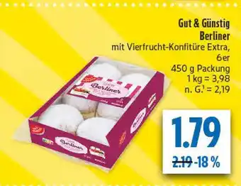 Jetzt im Angebot bei diska: Gut & günstig berliner mit vierfrucht-konfitüre extra ✅ Aktion gültig vom 9-02 bis 14-02.