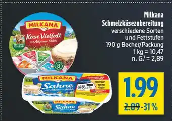Jetzt im Angebot bei diska: Milkana schmelzkäsezubereitung käse vielfalt ✅ Aktion gültig vom 29-12 bis 3-01.