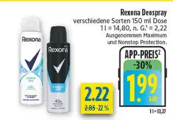 Jetzt im Angebot bei diska: Rexona deospray ✅ Aktion gültig vom 20-04 bis 25-04.