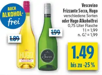 Vescovino Frizzante Secco, Hugo oder Hugo Alkoholfrei Angebote und Aktionen bei diska