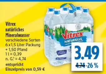 Vitrex natürliches Mineralwasser 6*1.5 l