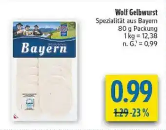 Den Preis von dem Wolf Gelbwurst finden Sie auch oben auf der Website, zusammen mit dem Datum, ab wann das Angebot erhältlich ist. Sie können die Preise auch im aktuellen Diska Prospekt nachhalten oder auf der diska Website nachschauen. Durch die Angebote können Sie sicher sein, die diska Produkte zum absoluten Bestpreis zu ergattern.