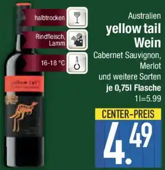 Den Preis von dem Australien yellow tail Wein finden Sie auch oben auf der Website, zusammen mit dem Datum, ab wann das Angebot erhältlich ist. Sie können die Preise auch im aktuellen E-Center Prospekt nachhalten oder auf der E-Center Website nachschauen. Durch die Angebote können Sie sicher sein, die E-Center Produkte zum absoluten Bestpreis zu ergattern.