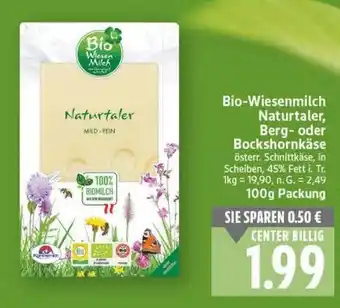 Bio-Wiesenmilch Naturtaler, Berg- oder Bockshornkäse Aktion bei E-Center