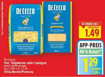 De Cecco Ital. Teigwaren oder Lasagna-Rabatt bei E-Center