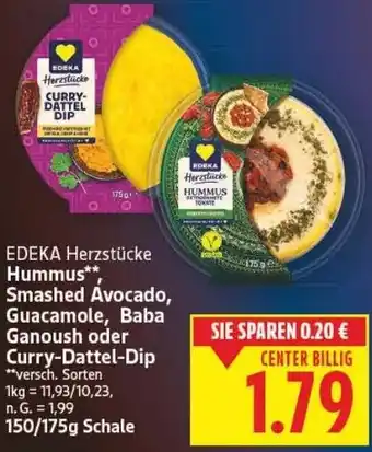 EDEKA Herzstücke Hummus, Smashed Avocado, Guacamole, Baba Ganoush oder Curry-Dattel-Dip-Rabatt bei E-Center