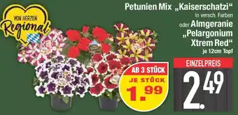 Petunien Mix ,,Kaiserschatzi" oder Almgeranie „Pelargonium Xtrem Red" Aktion bei E-Center