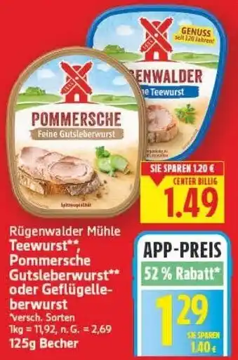 Rügenwalder Mühle Teewurst Pommersche Gutsleberwurst oder Geflügelleberwurst Angebote und Aktionen bei E-Center