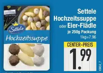 Jetzt im Angebot bei E-Center: Settele Hochzeitssuppe oder Eier-Flädle ✅ Aktion gültig vom 18-01 bis 24-01.