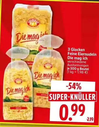 3 Glocken Feine Eiernudeln Die mag ich-Angebot bei Edeka Herkules