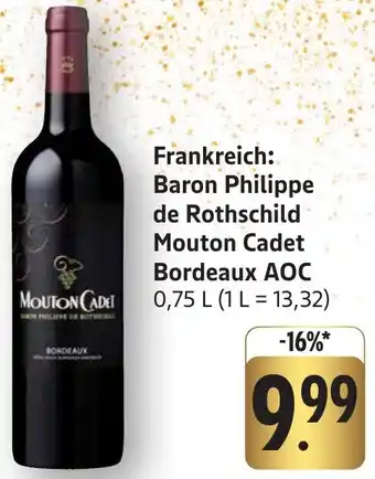 Frankreich: Baron Philippe de Rothschild Mouton Cadet Bordeaux AOC-Angebot bei Edeka Neukauf