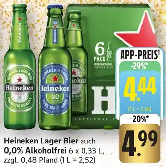 Heineken Lager Bier auch 0,0% Alkoholfrei-Angebot bei Edeka Neukauf