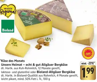 Käse des Monats Unsere Heimat - echt & gut Allgäuer Bergkäse oder Bioland Allgäuer Bergkäse-Angebot bei Edeka Neukauf