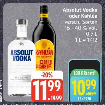Absolut Vodka oder Kahlua-Rabatt bei Edeka
