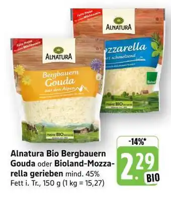 Alnatura Bio Bergbauern Gouda oder Bioland-Mozzarella gerieben Angebote und Online Aktionen direkt aus dem aktuellen Edeka Angebot