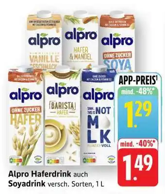 Alpro Haferdrink und Soyadrink-Angebot bei Edeka