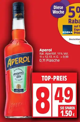 Aperol ital. Aperitif 0,7 L Flasche-Angebot bei Edeka