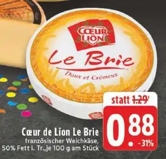 Jetzt im Angebot bei Edeka: Cœur de Lion Le Brie ✅ Aktion gültig vom 9-02 bis 14-02.