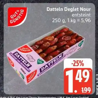 Abgesehen von Datteln „Deglet Nour“, bietet Edeka eine Menge anderer Artikel an. Behalten Sie den wöchentlichen Edeka Prospekt im Blick, um die besten Angebote und Aktionen nicht zu verpassen. Abgesehen von Datteln „Deglet Nour“ können Sie weitere, interessante Angebote entdecken: Datteln Deglet Nour, Deglet Nour Datteln & Gut & Günstig Datteln Deglet Nour.