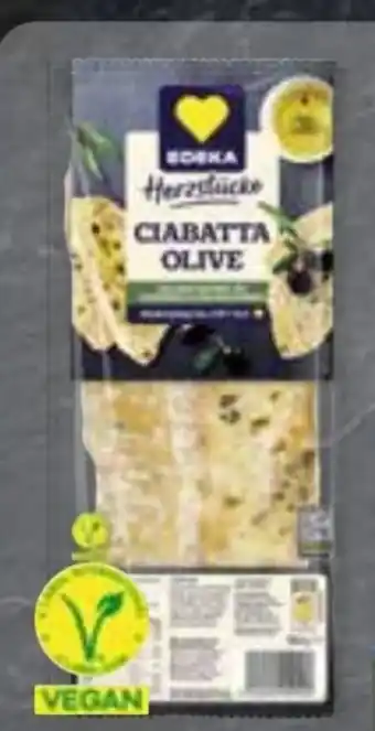 Jetzt im Angebot bei Edeka: Edeka Herzstücke Ciabatta Olive Vegan ✅ Aktion gültig vom 12-01 bis 18-01.