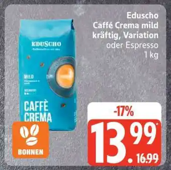 Jetzt im Angebot bei Edeka: Eduscho Caffé Crema mild kräftig, Variation oder Espresso 1 kg ✅ Aktion gültig vom 2-02 bis 7-02.