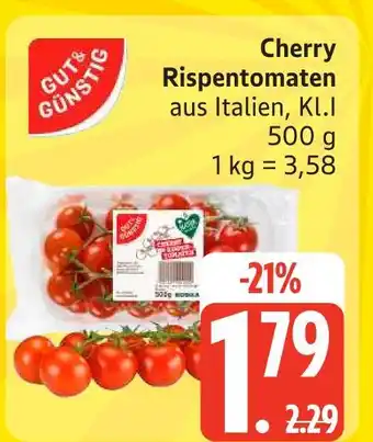 Jetzt im Angebot bei Edeka: Gut & günstig cherry rispentomaten ✅ Aktion gültig vom 2-03 bis 7-03.