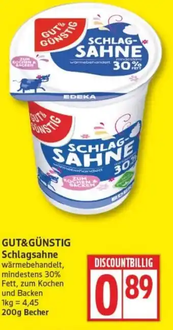 Jetzt im Angebot bei Edeka: GUT&GÜNSTIG Schlagsahne ✅ Aktion gültig vom 2-02 bis 8-02.