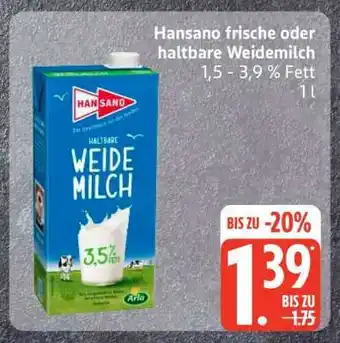 Hansano frische oder haltbare Weidemilch Aktion bei Edeka